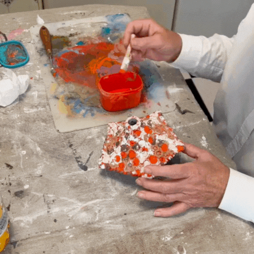 Jeg ville ikke længere ignorere de mange ideer, der blev ved med at banke på. I 2021 begyndte jeg at væve mine første kunstværker, og det blev starten på noget nyt. Jeg blev oplært i papirkunst og papmaché, og de senere år har jeg fundet stor glæde ved at arbejde med rå materialer som beton og gips – materialer, jeg kender fra mit arbejde med husbyggeri.