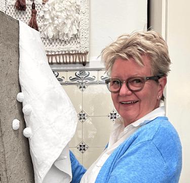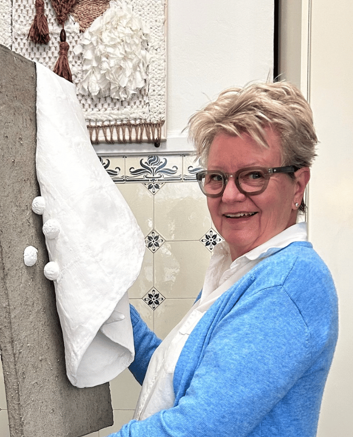 Jeg skaber unikke kunstværker, der ikke bare pynter i et rum, men tilfører sjæl, stemning og til tider provokerer beskueren. Mine værker bliver til i samspil med mange forskellige materialer – papir, papmaché, gips, beton – som jeg ofte kombinerer med bløde elementer som strik og hækling. Væven har også åbnet nye døre for mig og givet mig en følelse af ro og rytme, som jeg længtes efter.